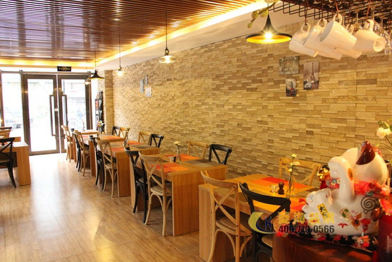 一家餐廳的氛圍光靠內(nèi)部硬裝是不夠的,往往它所處的環(huán)境與結(jié)構(gòu)也會成為關(guān)鍵因素。設(shè)計師陪同戚小姐去現(xiàn)場量房時注意到店面后方有一片天然雅致的花園――將餐廳分為室內(nèi)與露天兩部分的靈感由此誕生――室內(nèi)采用簡約休閑的裝飾風(fēng)格,低調(diào)柔和;露天則利用花園愜意的清新感,休閑慵懶。果然,設(shè)計師提出這個構(gòu)想后立刻得到了戚小姐的認可。