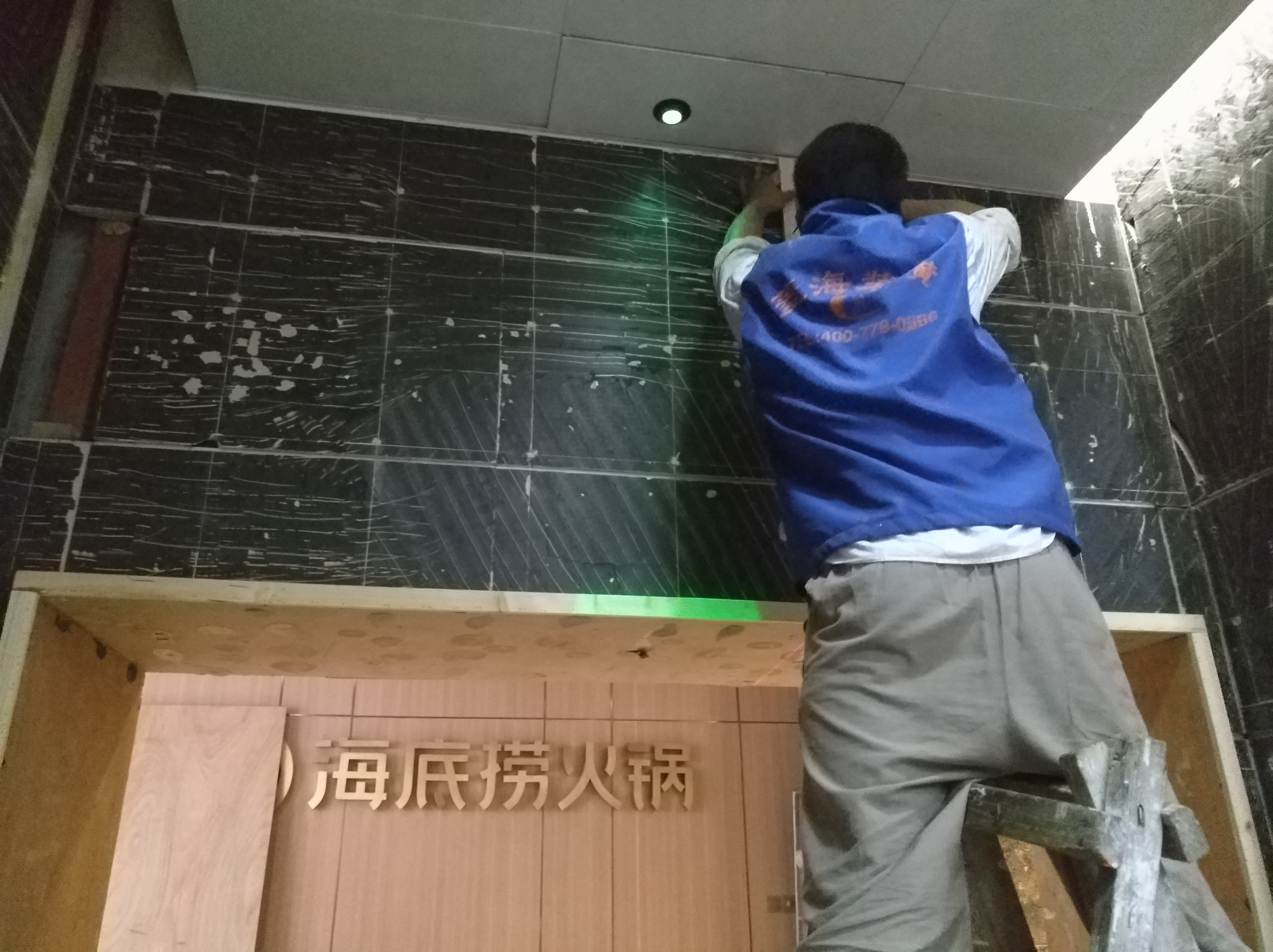 海底撈的改造工程計(jì)劃為區(qū)域施工,以散客區(qū)、包廂區(qū)、公共接待區(qū)劃分單位工程,以最大能力保證店面能夠正常營(yíng)業(yè)。散客區(qū)在施工期間以圍擋進(jìn)行阻隔,如果圍擋附近有客人入座,必須停止一切有明顯噪聲、氣味、灰塵的施工,確??腿擞貌腕w驗(yàn)不被影響。進(jìn)入夜間,12點(diǎn)以后的客人陸續(xù)減少,此時(shí)將會(huì)進(jìn)行吊頂、新建墻體、木工柜體等有聲作業(yè)。晝夜連續(xù)施工雖然辛苦,但在項(xiàng)目經(jīng)理科學(xué)地組織交叉作業(yè)下,菱海團(tuán)隊(duì)最終保證了工作效率,也保證了工程質(zhì)量。