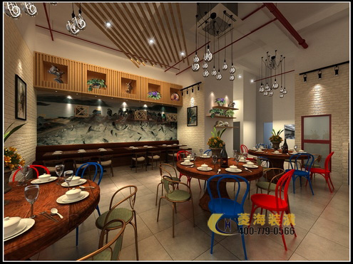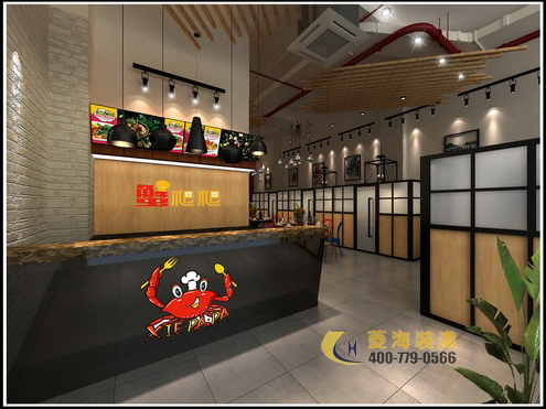 ???????第一家蟹爬爬餐廳的設計風格以時尚、中式、休閑為主題,搭配俏皮可愛的品牌名稱與logo設計,十分適合年輕一族或小型家庭聚餐。就餐區(qū)劃分為卡座、散桌以及包間,鬧中亦可取靜。蟹爬爬的整體裝飾透著簡約的現(xiàn)代感,淺色調(diào)墻面以雅致壁畫作為點綴,中式化的吊燈造型低調(diào)不失精致。家具方面則選擇了顏色跳脫的餐椅作為調(diào)劑,在中規(guī)中矩的中式風格中留下亮眼一筆,由此來突出海鮮主題的新鮮與活力。