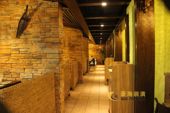 在設(shè)計(jì)方面,孫先生的要求非常明確,他認(rèn)為東南亞菜系的餐廳必須具有讓人眼前一亮的民族風(fēng)情。因此設(shè)計(jì)師特意將椰園的門頭設(shè)計(jì)成一座木質(zhì)的泰式尖頂亭,這不僅在視覺(jué)上十分抓人眼球,同時(shí)它還給日后排隊(duì)用餐的客人們提供了一個(gè)有趣愜意的等座環(huán)境,可謂是一舉兩得。而在餐廳內(nèi)部,設(shè)計(jì)師則采用了木梁吊頂、漏窗、編織裝飾等,這些東南亞傳統(tǒng)風(fēng)格必備的設(shè)計(jì)元素,考慮到客人需要一個(gè)舒適輕松的用餐環(huán)境,所以設(shè)計(jì)師特意避免了大量堆砌裝飾素材使餐廳顯得過(guò)于雜亂而惹人心煩。局部采用一些金色的燈光照明以及簡(jiǎn)單的敦煌壁畫,既體現(xiàn)了大氣穩(wěn)重感也塑造了濃厚的泰式風(fēng)情。