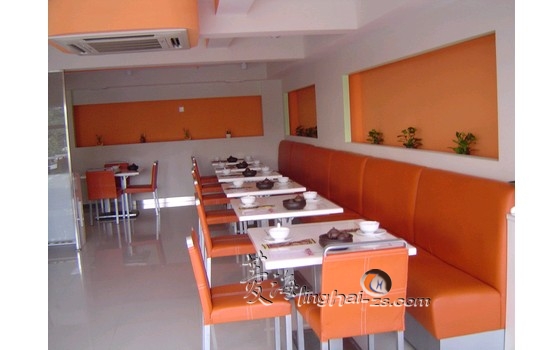 潮汕砂鍋粥店的設(shè)計相當簡潔大方,店內(nèi)幾乎沒有一處復(fù)雜的裝飾,菱海設(shè)計師利用簡約概念的白色情調(diào),打造出輕松隨意的氛圍,而橘色的座椅點綴其中,又給店內(nèi)的環(huán)境平添了幾許靈動,讓空間活躍起來。別出心裁的花色墻面也是店內(nèi)設(shè)計的一個看點,艷麗的色彩使空間變得繽紛且充滿活力。二樓印著“365?HAPPY?SMILE”的灰色系墻面則散發(fā)著向上樂觀的正能量,讓前來用餐的人們看了之后都能會心一笑,帶著一份好心情去品嘗美食。