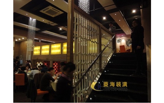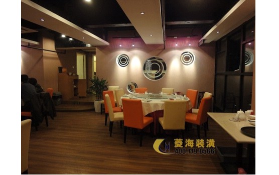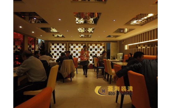 ????????客戶李小姐是上海工作多年的白領(lǐng),湖南人,地道的湘妹子,經(jīng)營(yíng)這家楚湘園作為副業(yè),她特地請(qǐng)來(lái)在家鄉(xiāng)當(dāng)廚師的親戚為楚湘園掌勺。李小姐來(lái)我們公司咨詢時(shí),表示這是她在上海開(kāi)的第一家飯店,在設(shè)計(jì)裝修上既沒(méi)有經(jīng)驗(yàn),又想做到最好。這顯然是對(duì)設(shè)計(jì)師的一次考驗(yàn),沒(méi)有要求的設(shè)計(jì)才是最難的設(shè)計(jì)。作為一家餐廳,室內(nèi)氣氛往往影響著顧客們的食欲。湘菜以辣聞名,熱火朝天的湘菜館不適合太過(guò)繁復(fù)的裝飾,所以設(shè)計(jì)師在大廳設(shè)計(jì)上追求清爽大方,餐臺(tái)的合理分布讓空間不顯擁擠,橙色搭配米黃色的餐桌椅、溫和的燈光照明,給人以明快的色調(diào),輕松從容的進(jìn)餐氛圍讓關(guān)山路上這家湘菜館,小有名氣,生意紅火。