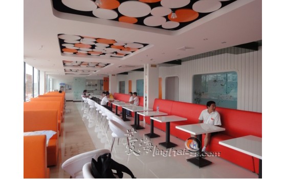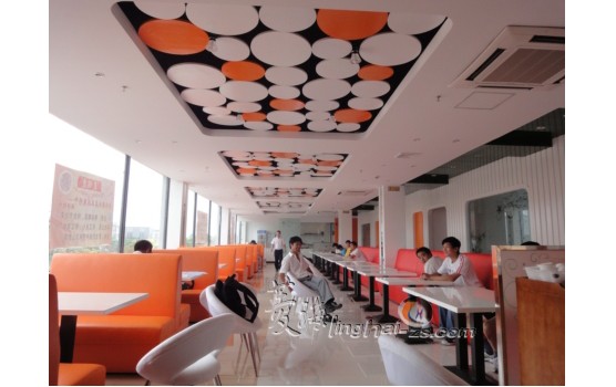 ????????美桔庭中餐廳最大的亮點就是引人眼球的色彩,紅橙白之間的碰撞給人帶來清新明快的用餐體驗。按照客戶朱先生的要求,美桔庭的定位是時尚與年輕,所以不論是選色還是家具設(shè)計都力求新鮮,不走附庸之路。結(jié)合以上幾點,設(shè)計師很快聯(lián)想到了宜家風(fēng)格,利用樸實素雅的白色情調(diào)與極簡約的設(shè)計風(fēng)格,打造出時尚前衛(wèi)的感官,再配以橘色沙發(fā)點綴其中,使整個空間又多了幾許靈動,更顯繽紛活力。餐廳吊頂則以波點元素作為裝飾,圓形圖案打破了略顯刻板的方形線條,給餐廳帶來更多變的面貌。
