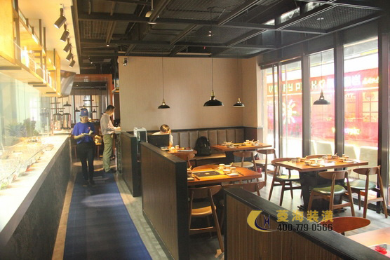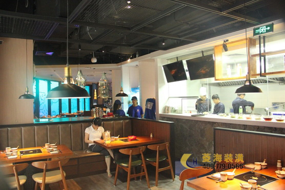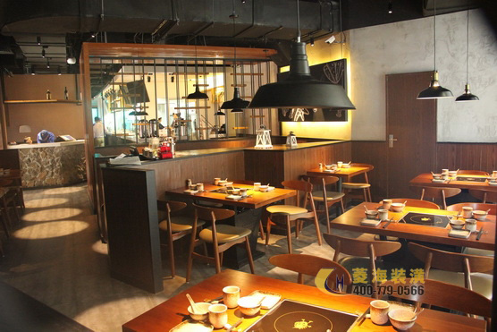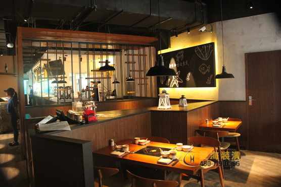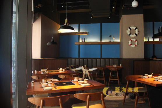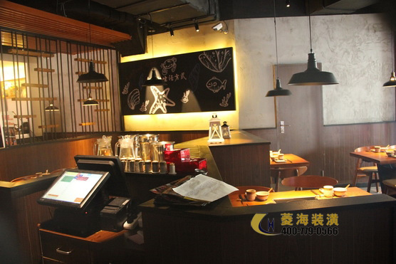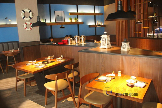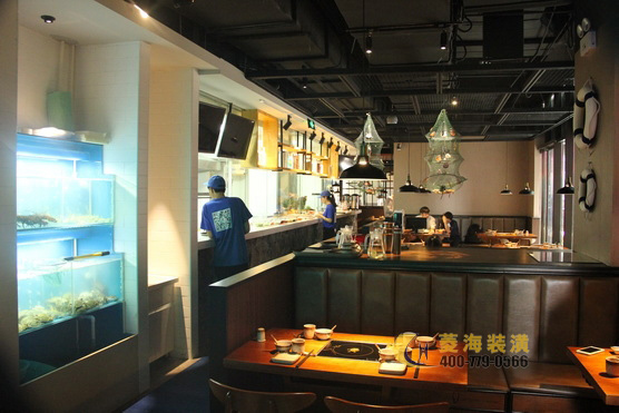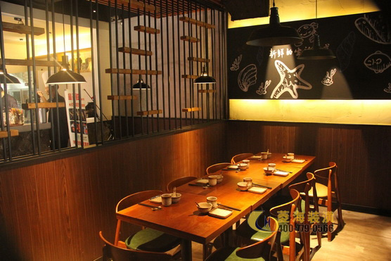 與以“深海”為主題而設(shè)計(jì)的“深海八百米”不同,新品牌“最海鮮”餐廳的設(shè)計(jì)大大削減了海鮮主題的概念,設(shè)計(jì)師選用相對(duì)簡(jiǎn)約的中式餐桌椅,搭配低調(diào)的照明處理,著重營(yíng)造餐廳的休閑與親民感,這一改變富于了最海鮮不同的品牌定位。而在食材的選擇上,設(shè)計(jì)師則貫徹深海集團(tuán)堅(jiān)持“看得見的新鮮”理念,從玄關(guān)開始,長(zhǎng)達(dá)10米的明廚設(shè)計(jì),向食客展示來(lái)自世界各大海域的海鮮美食,也彰顯了餐廳的核心競(jìng)爭(zhēng)力。最海鮮的門頭設(shè)計(jì)也是一大亮點(diǎn),設(shè)計(jì)師運(yùn)用大面積景觀銹板,加上鏤空工藝,品牌LOGO躍然而上,搭配巖石墻面與人造木門,粗狂缺不失藝術(shù)感的設(shè)計(jì),讓整個(gè)最海鮮餐廳更具吸引力。